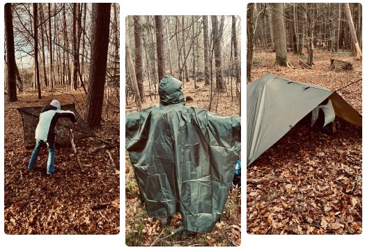 Mit einem Tarp wurden verschiedene Möglichkeiten des Aufbauens ausprobiert